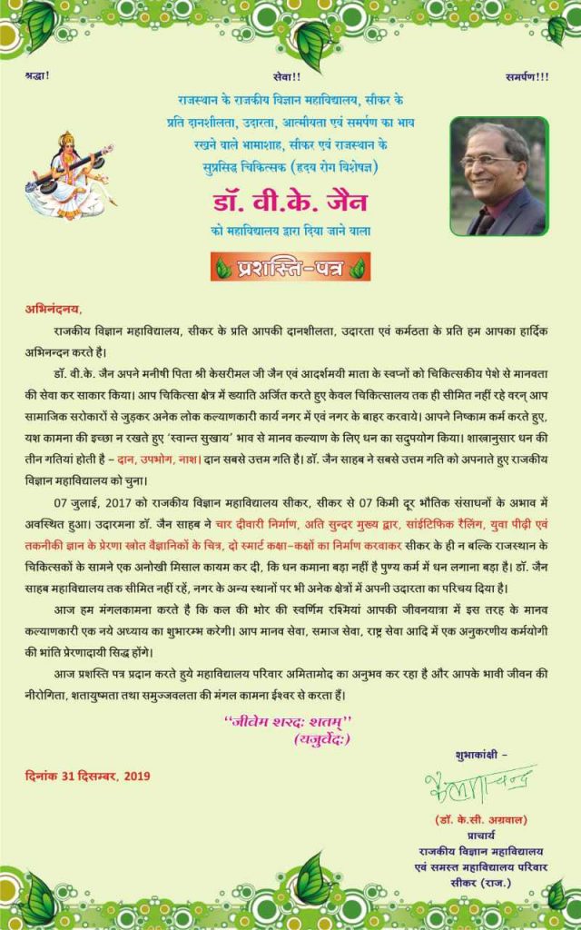 - Chief Minister shri Ashok Gehlot presented the Illuminous Alumni award of SMS medical college Jaipur