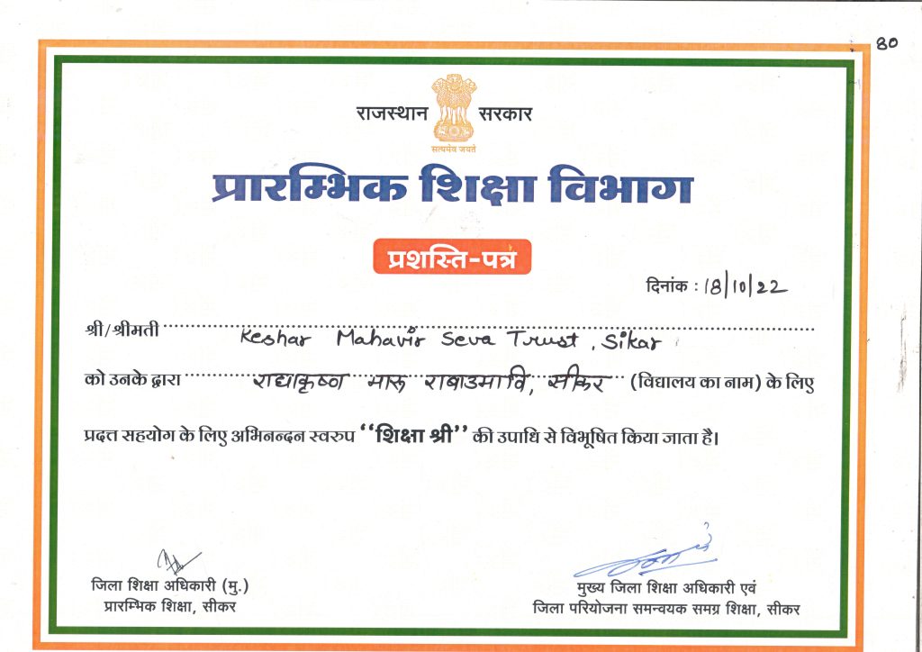 - Chief Minister shri Ashok Gehlot gave state award of ” Pride of Rajasthan “